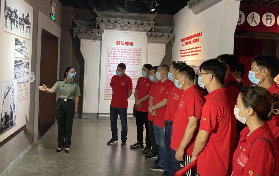 下午,大家來到了紅軍北上抗日先遣隊(duì)紀(jì)念館。該館位于黃山區(qū)譚家橋鎮(zhèn),館內(nèi)展出大量由收藏家羅文田個人收藏的珍貴紅軍革命文物實(shí)物與圖片,全方位展現(xiàn)了紅軍北上抗日先遣隊(duì)的戰(zhàn)斗歷程和崢嶸歲月。一件件生活用品,一本本文檔書籍,一把把戰(zhàn)斗武器,通過羅館長的介紹,大家仿佛能看到當(dāng)年紅軍將士浴血奮戰(zhàn)和尋淮洲、粟裕等將領(lǐng)帶領(lǐng)戰(zhàn)士為了人民解放事業(yè)前仆后繼的壯烈戰(zhàn)斗場景,心靈受到極大震撼。